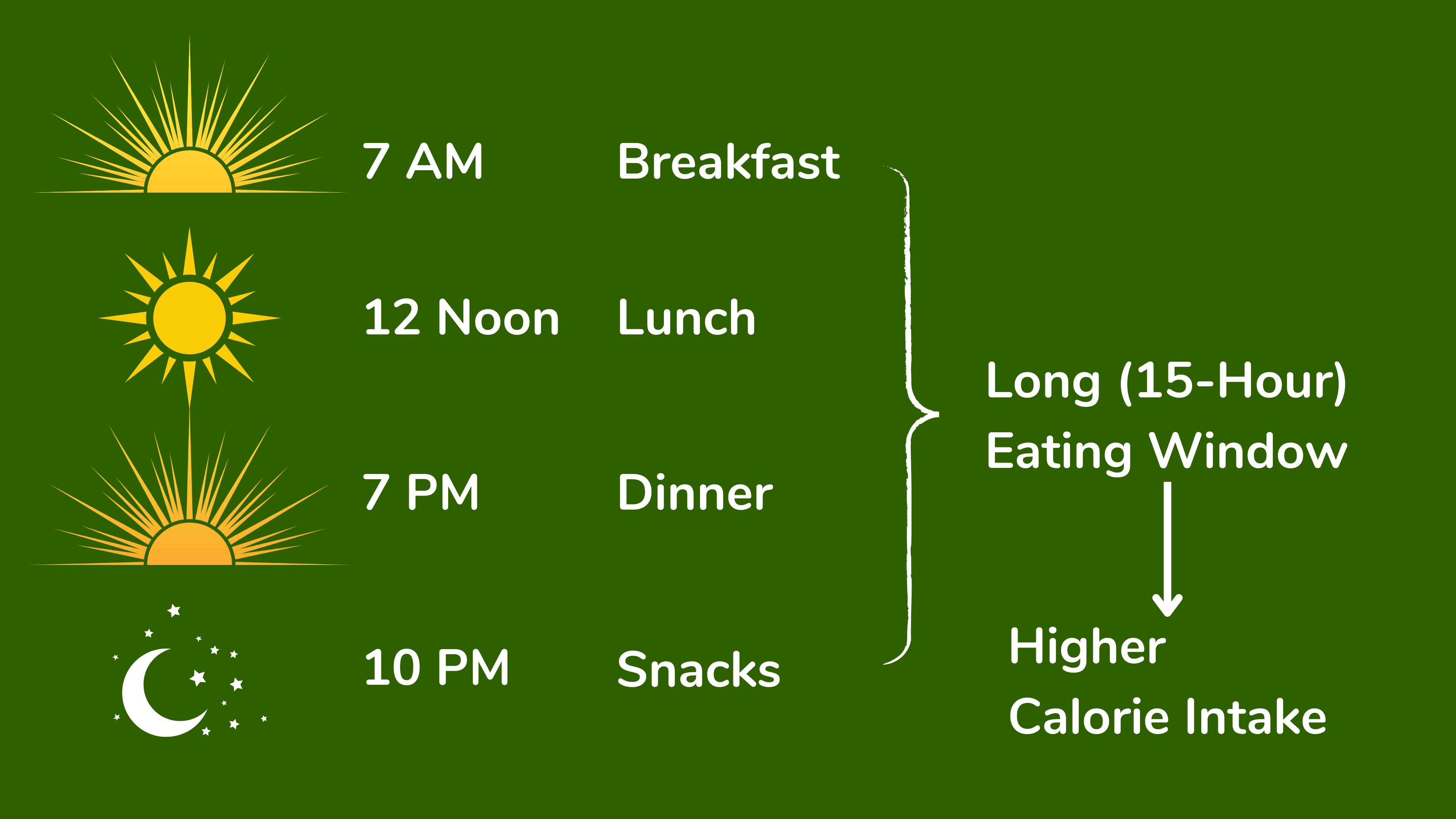 另外两个因素也会导致高热量摄入量。这两个因素与饮食质量没有直接关系,但仍然值得一提,因为可以解释为什么 Sam 会摄入如此多的热量。