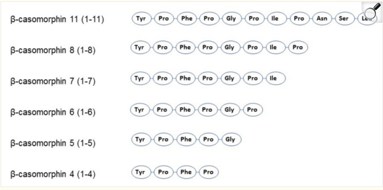 “β-酪啡肽 (βCM) 是一类链长为 4-11 个氨基酸的肽,所有肽均以对其阿片类活性至关重要的酪氨酸残基开头。”