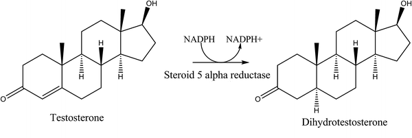 但仅仅因为你有高 NADPH 就意味着你会有高 DHT。由于 DHT 可以通过 3α 羟基类固醇脱氢酶 (3α-HSD) 使用 NADPH 作为辅因子转化为 3α-二醇。在另一方面,3 α -HSD可以使用NAD转换3 α -二醇回DHT。
