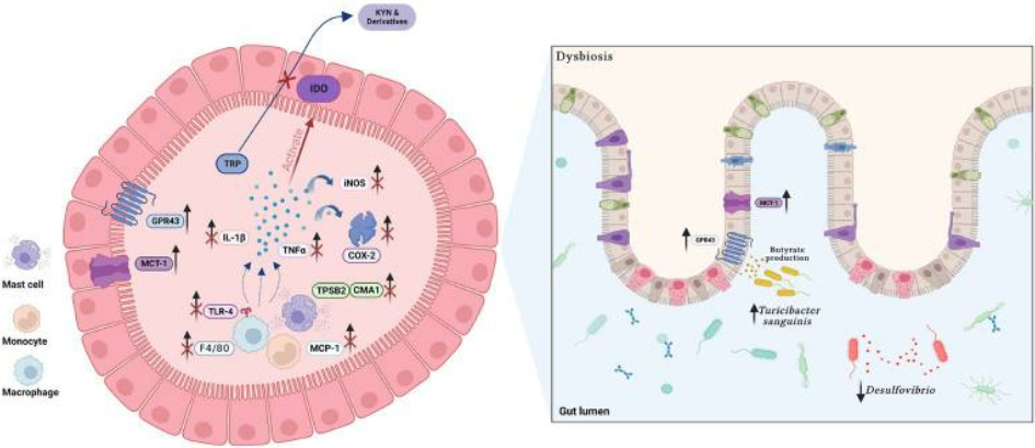 内毒素转移减少。 全身炎症信号传导减少。