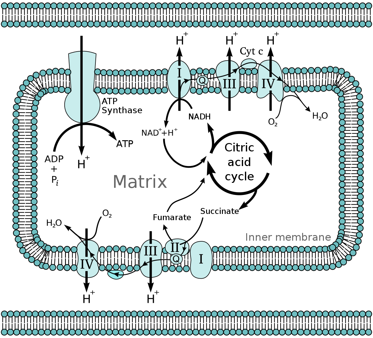 电子传递链由复合物(复合物 1 至 5)组成,由称为心磷脂的脂质结构保持稳定。辅酶Q10是复合物1的基本组成部分。没有足够的辅酶Q10,NADH会在细胞中积累,导致还原性应激(与氧化应激相反,但同样有害)。