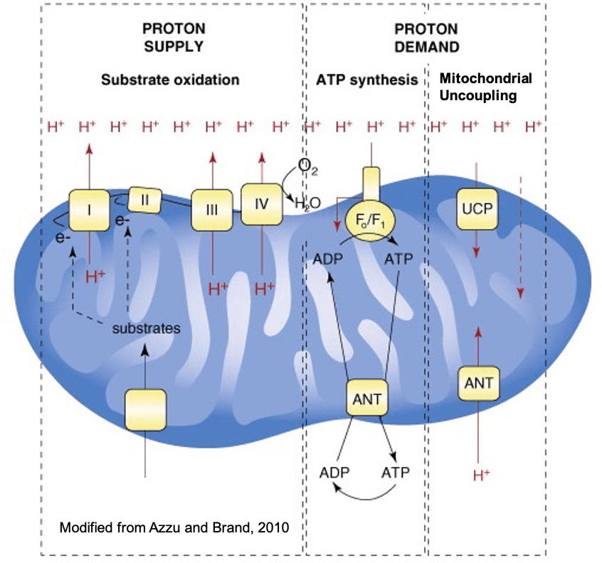 解偶联是由线粒体膜中的蛋白质诱导的,这些蛋白质将质子泵入线粒体以产生热量而不是 ATP。